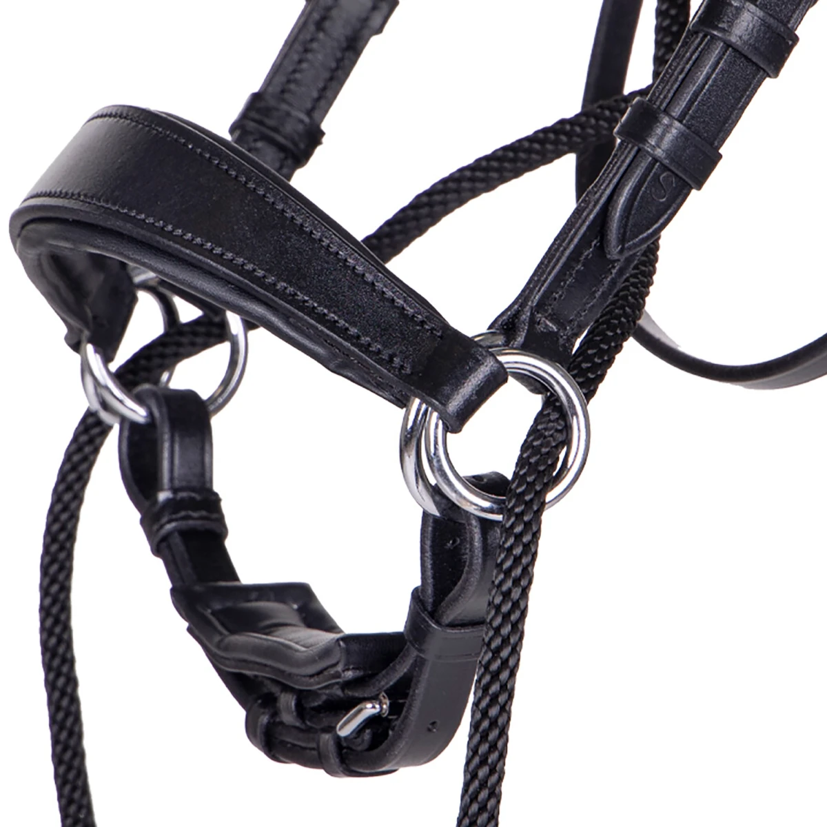 - kan gebruikt worden als sidepull, kaakgekruist en kingekruist hoofdstel