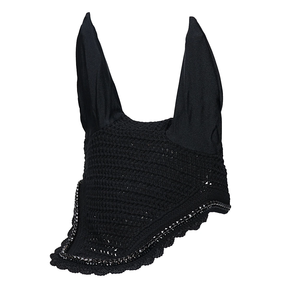 - beschermt de oren van het paard tegen vliegen tijdens het rijden