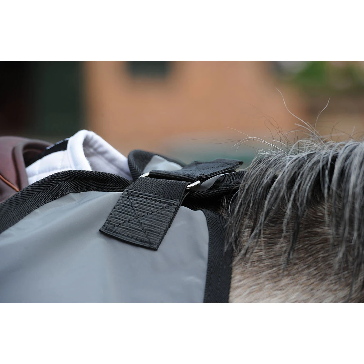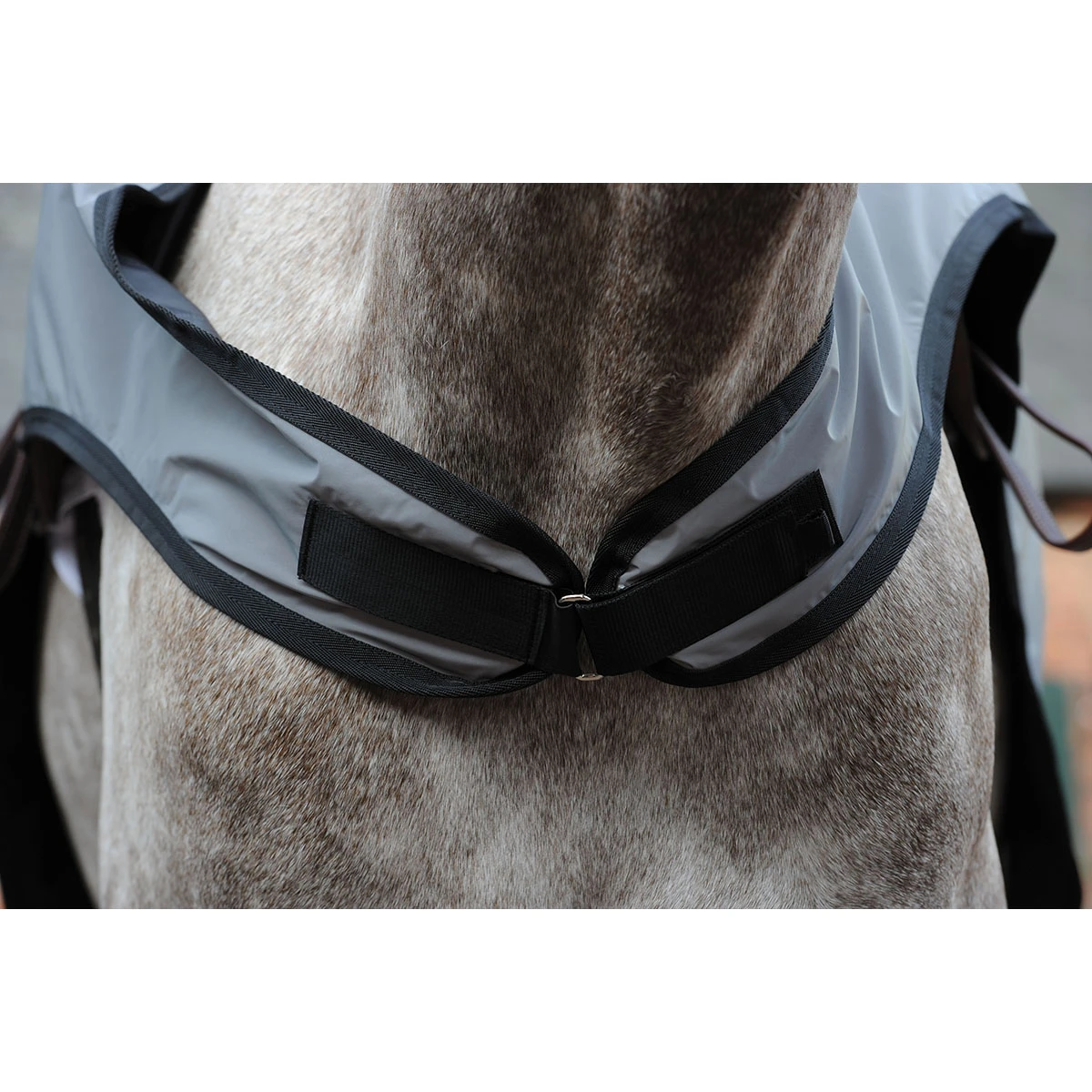 - bevestigingspunten met klittenband op de borst en voor het zadel