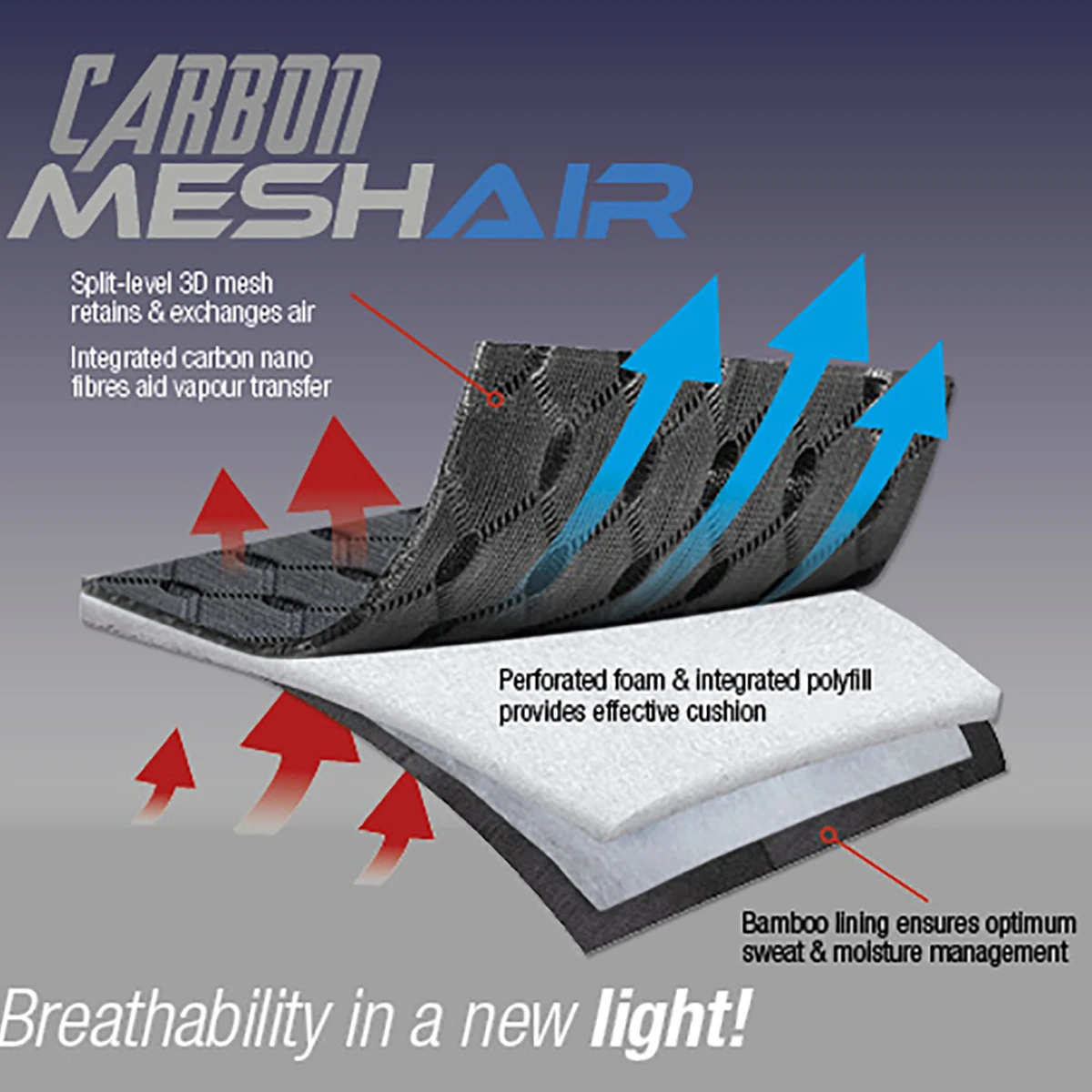 - het 3D mesh zorgt voor een optimale temperatuurregulatie waarbij de lucht vrij in meerdere richtingen kan stromen
